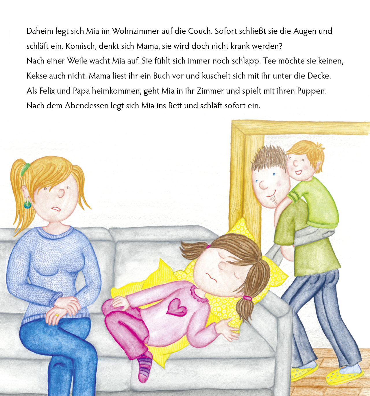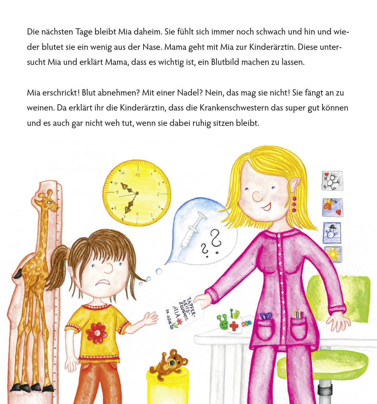 Die kleine Mia ist ein echter Wirbelwind. Eines Tages wird sie krank. So krank, dass sie sogar zur Kinderärztin, Blutabnahme und schließlich ins Krankenhaus muss. Tapfer meistert sie zusammen mit ihrer Familie, lieben Freunden und der Kampfsocke diese schwierige Zeit, bis sie schließlich wieder gesund wird!